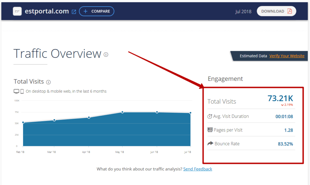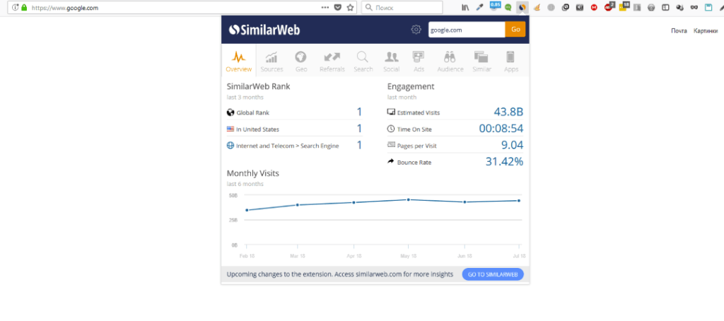 Эти значения — не прямые цифры из Google Analytics, а расчетные величины на базе внутренних алгоритмов сервиса, они имеют высокую погрешность. Значения вполне подходят для оценки ниши, а также юзабилити успехов ваших конкурентов. Но нужно помнить о том, что сервис может как повышать, так и занижать значения в сравнении с реальными.