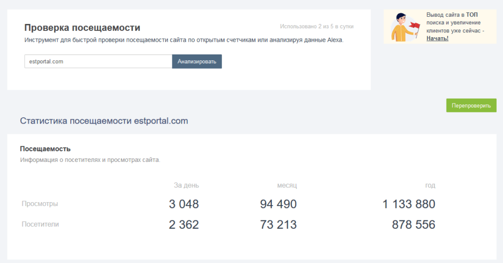 - Для оценки качества сайта, где планируется размещать PR-публикации, баннерную рекламу, ссылки и т. п. Например, хотите разместить статью и выбираете между сайтами. Так как это PR-публикация, то для вас важен охват аудитории. Поэтому есть смысл проанализировать посещаемость всех ресурсов и, при прочих равных параметрах, выбрать тот сайт, где посещаемость выше.