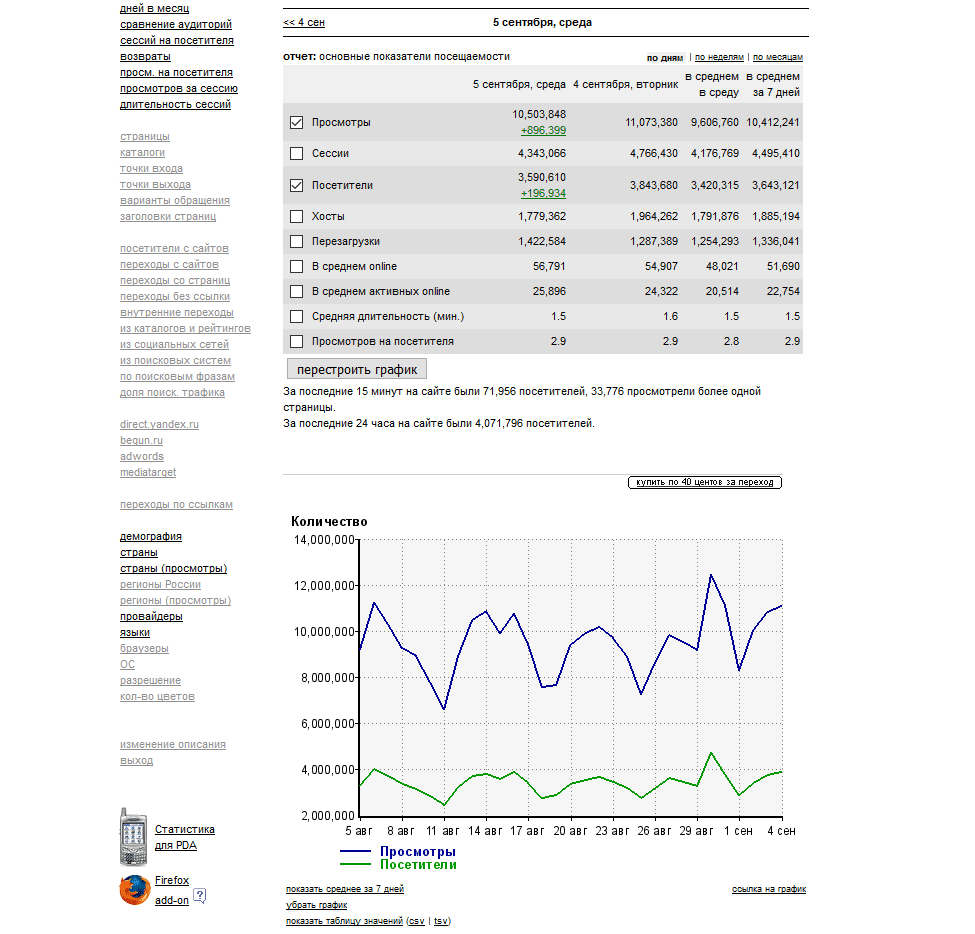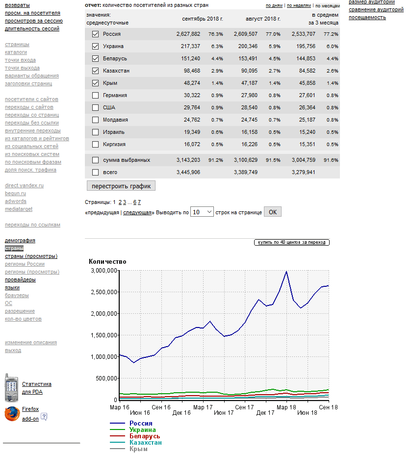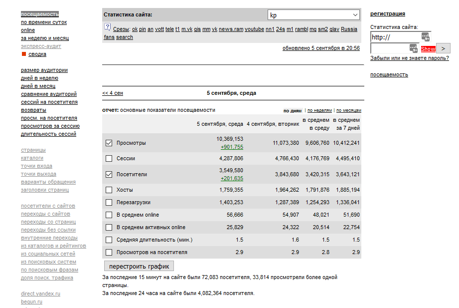 Это рейтинг сайтов русскоязычного интернета, который имеет свой собственный счетчик. Владельцы сайтов со счетчиком LiveInternet порой делают доступной статистику сайта в рейтинге. И тогда показаниями этого счетчика можно воспользоваться. Чтобы получить такую информацию, можно попробовать зайти с 2 сторон: