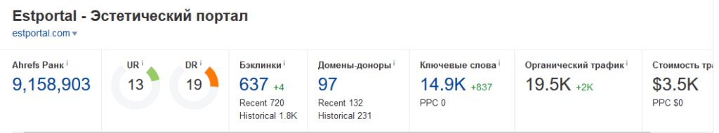 Что же касается поискового трафика, в большинстве инструментов определить суммарный трафик оказалось сложно. Особенно для сайтов, которые продвигаются сразу по нескольким регионам, так как приходилось анализировать каждую базу отдельно и суммировать значения. В случаях анализа англоязычных международных сайтов — просуммировать это все вручную по сотне баз вообще нереально. По сравниваемым сайтам единой корреляции нет. Где-то хорошо себя проявил SerpStat, а где-то — Ahrefs, но это могут быть вполне случайные совпадения. В русскоязычных сайтах Ахрефс проявил себя не на высоте (часто занижал трафик, вероятно, из-за слабых русскоязычных баз).