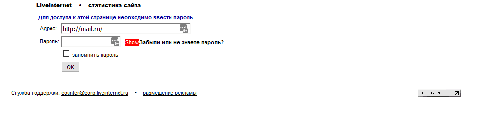 При нажатии на нее вас перебросит на страницу сайта в рейтинге. В случае если статистика открыта, вы увидите уже ранее упоминавшуюся страницу со статистикой по сайту. А если данные закрыты владельцем, то система запросит у вас логин и пароль.