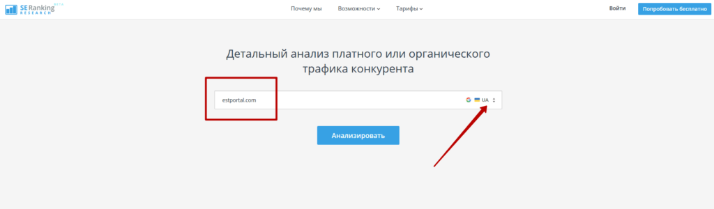 SimilarWeb — очень популярная в мире зарубежная платформа для анализа конкурентов. Дает массу информации по сайту. Инструмент платный. При этом на официальном сайте цена дается только по запросу и недоступна сразу. В бесплатном варианте SimilarWeb показывает значительное количество данных по источникам трафика на сайт. Он незаменим при любом анализе конкурентов, так как рассчитывает по собственным алгоритмам не только поисковый трафик на сайт, а также социальный, реферальный, прямой, контекстный и трафик рассылок.Для анализа необходимо на главной странице сервиса ввести анализируемый домен в специальную форму: