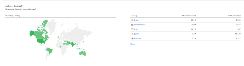 - Country Rank — тоже трафиковый ранг сайта, но уже не в мире, а по конкретному региону. Его интерпретация похожа на предыдущий параметр;