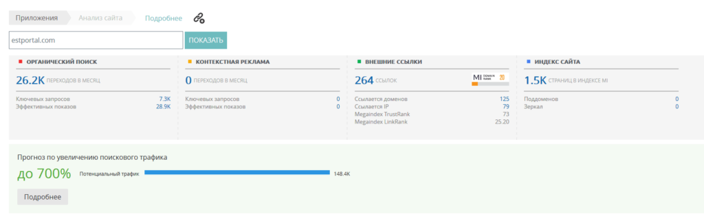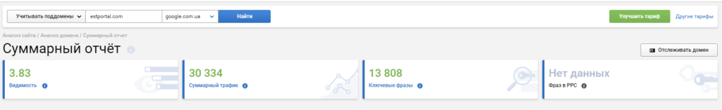 Относительно всех значений стоит отметить тот факт, что сервис часто суммирует показатели поддоменов со значениями основного домена. Это касается, в основном, поискового трафика и некоторых других отчетов. Например, вы хотите получить данные Яндекс Маркета. Поскольку это поддомен самого Яндекса, его показатели добавятся к основному домену, что значительно затруднит анализ. А если ввести именно адрес поддомена в анализатор, то считать видимость и трафик для него инструмент не будет, хотя часть данных и отобразит: