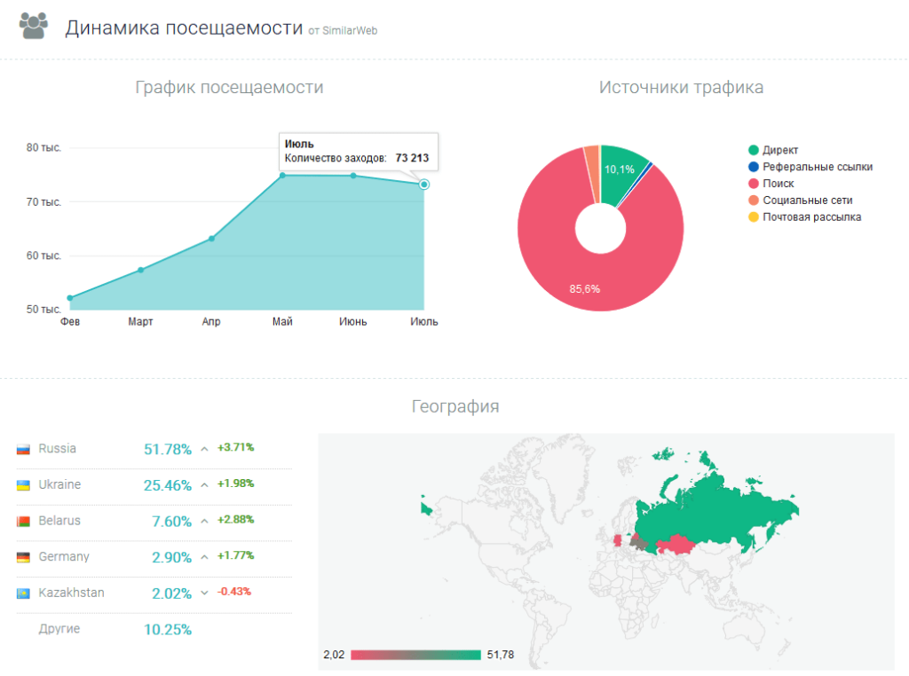Эти значения — не прямые цифры из Google Analytics, а расчетные величины на базе внутренних алгоритмов сервиса, они имеют высокую погрешность. Значения вполне подходят для оценки ниши, а также юзабилити успехов ваших конкурентов. Но нужно помнить о том, что сервис может как повышать, так и занижать значения в сравнении с реальными.
