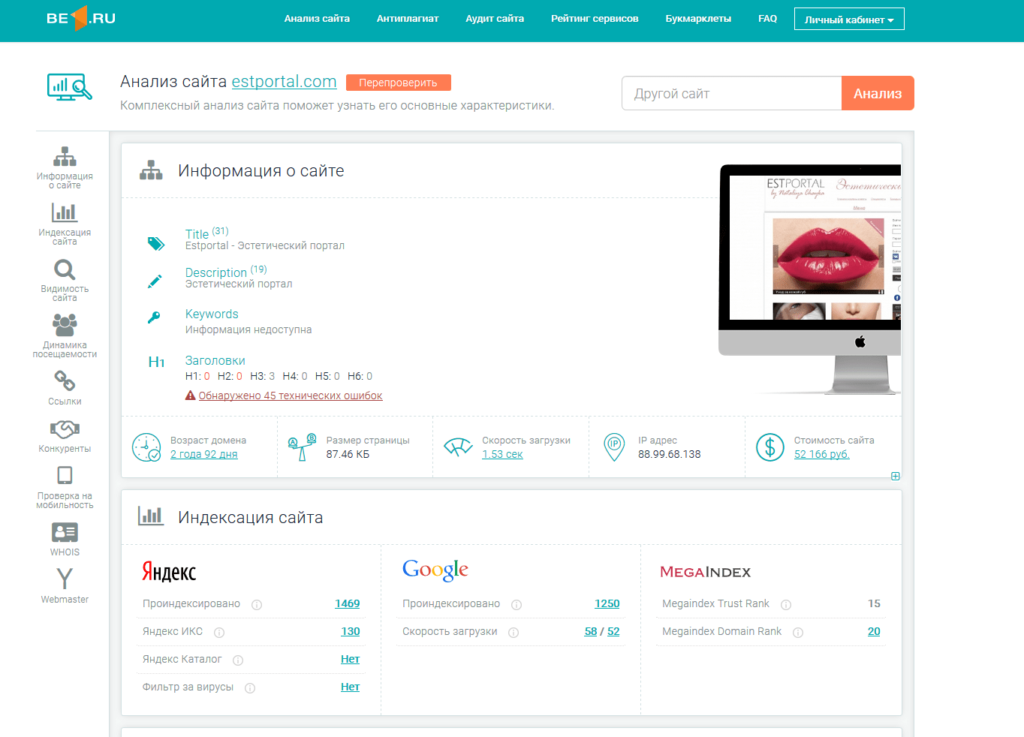 где site.com — это домен анализируемого сайта. В ответ откроется следующая информация:
