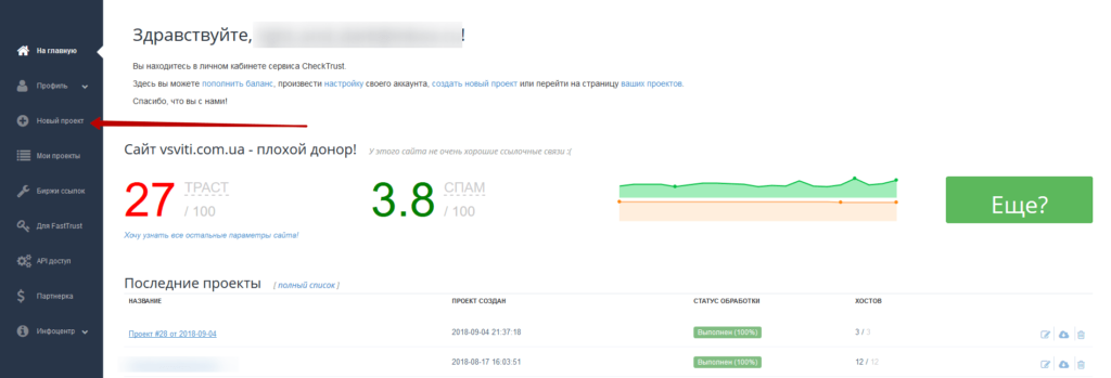 Checktrust | СНГ, US, EU | 300 руб. за 500 проверок или 960-2888 руб. в месяц | 500 проверок бесплатно при регистрации | Нет | SEO, прямой, реферальный, соц.сети |