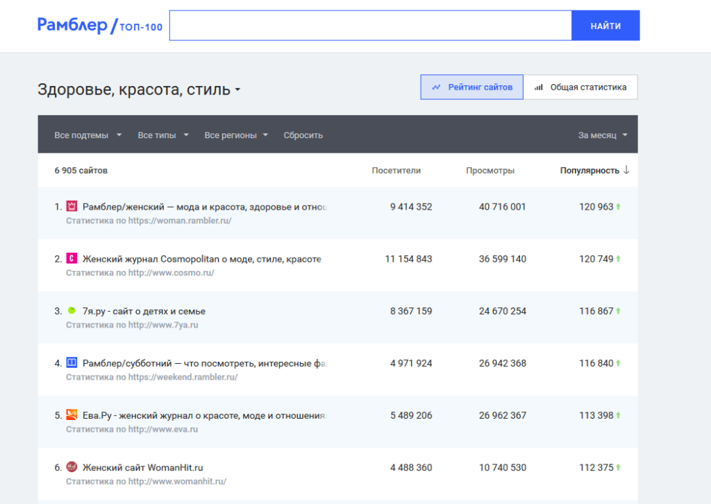 Можно выбрать близкую вам категорию и изучать сайты, либо пойти на главную страницу рейтинга, чтобы посмотреть самые посещаемые сайты рейтинга LiveInternet без привязки к тематике.