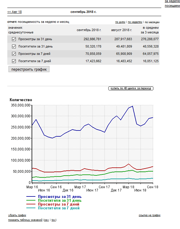 Данные с прямых установленных счетчиков посещаемости, типа LiveInternet, Яндекс Метрика, Google Analytics — это самый точный вариант получения данных о посещаемости сайта. Это не математически рассчитанные показатели, а данные, которые зафиксированы самим счетчиком. Многие владельцы не дают открытого доступа к статистике сайта. Поэтому такой вариант подходит не всегда. Кроме того, счетчики с открытой статистикой, в основном, встречаются в русскоязычном интернете. А практически все зарубежные сайты используют счетчики со скрытой статистикой, типа Google Analytics, и этот вариант оценки трафика конкурентов в таком случае не сработает.