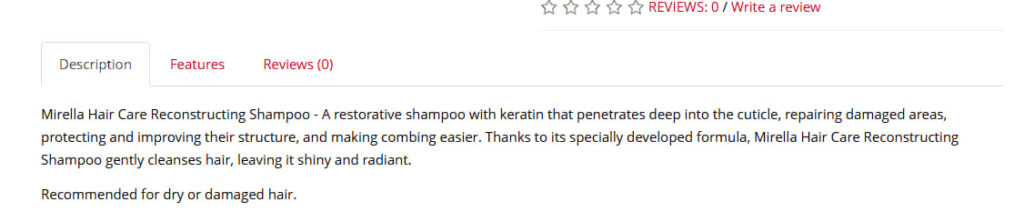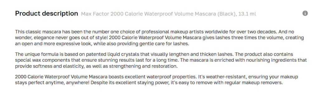 Put yourself in the customer's shoes - you decided to look for a new shampoo on the Internet and started Googling. And the result is full of sites with a huge range of products - your eyes are just running wild. If you start to study each product, there is a problem: not all brands of cosmetics more or less digestible description. And very often you can find a product description like this: