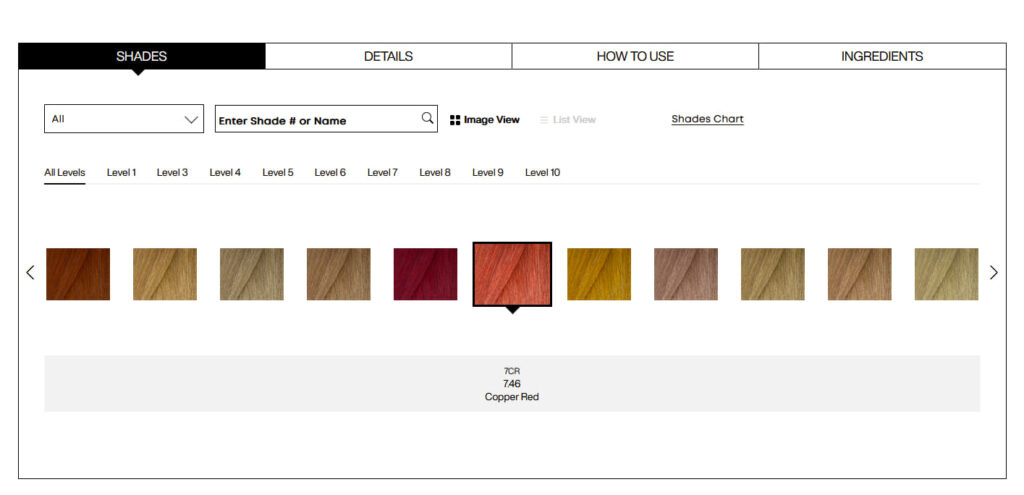 - Additional important information on specialised products like hair dye palette photos and descriptions.