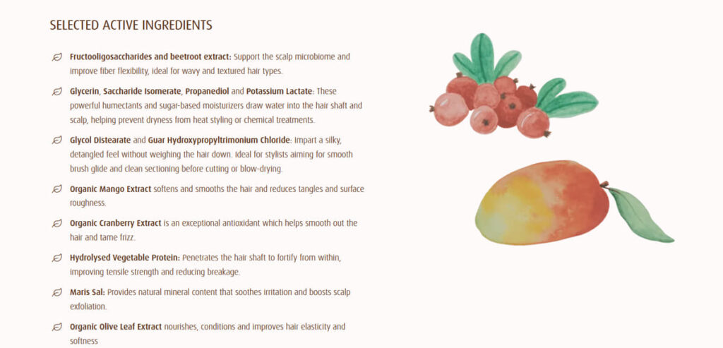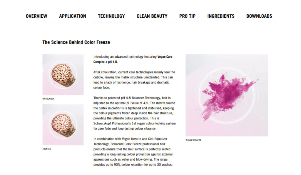If we need to describe the product for a different audience, the information blocks can be modified and added. For example, the product description for hairdressers might be (italics are changes and additions):