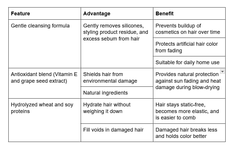 - Gentle cleansing and maximum preservation of artificial hair colour.