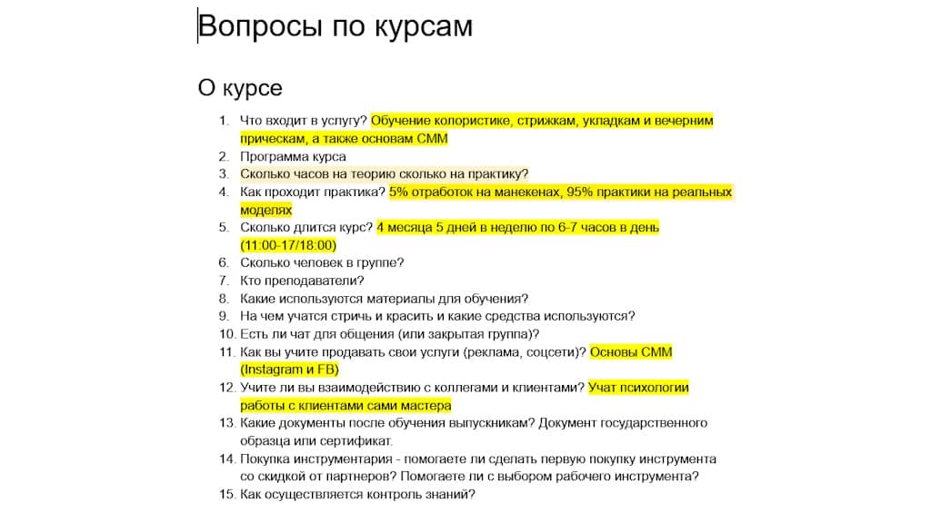 Іноді для складних або висококонкурентних послуг потрібна поглиблена підготовка. В окремих випадках для створення дійсно сильної сторінки проводиться детальне інтерв’ю з власником салону або фахівцем, щоб коректно передати унікальність, специфіку і сильні сторони послуги. Наприклад, серед кейсів агентства iMart був проєкт салону краси з навчанням перукарському мистецтву з нуля. Вартість програми була вище середньоринкової, тому до створення контенту підійшли особливо ретельно. У цьому випадку звичайних текстів було б недостатньо. Тому для правильної презентації послуги навчання ми робили майже двогодинне інтерв’ю з цілою низкою питань, щоб правильно підготувати повноцінну сторінку, що продає курс, яка розкривала переваги навчання саме в цьому салоні в порівнянні з іншими пропозиціями на ринку.