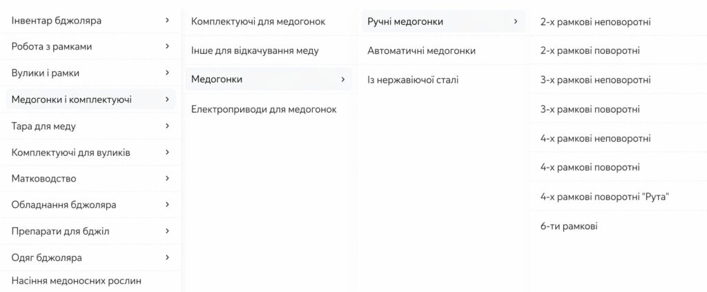 - Професійні бджолярі (фермери) - власники середніх і великих пасік, для яких це основний бізнес. Їх цікавить продуктивне обладнання - автоматичні медогонки, декристалізатори меду тощо, а також можливість оптових закупівель препаратів для бджіл.