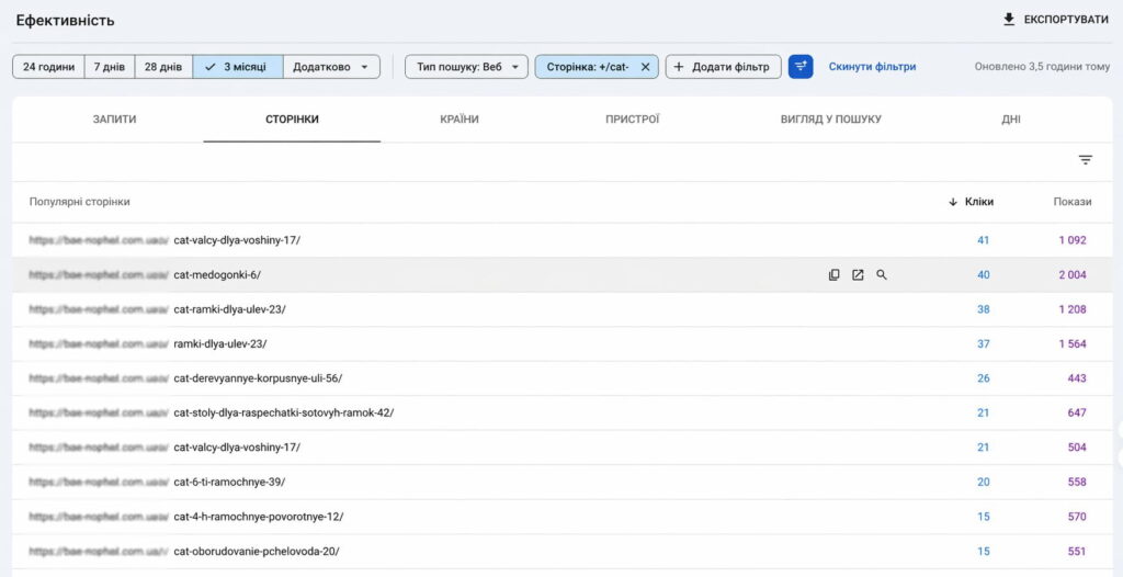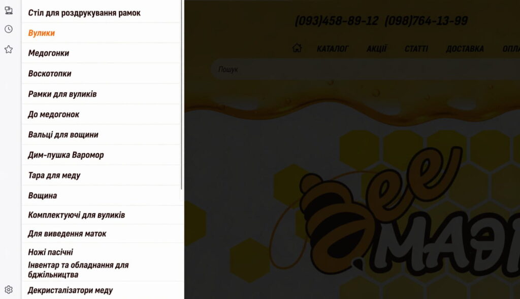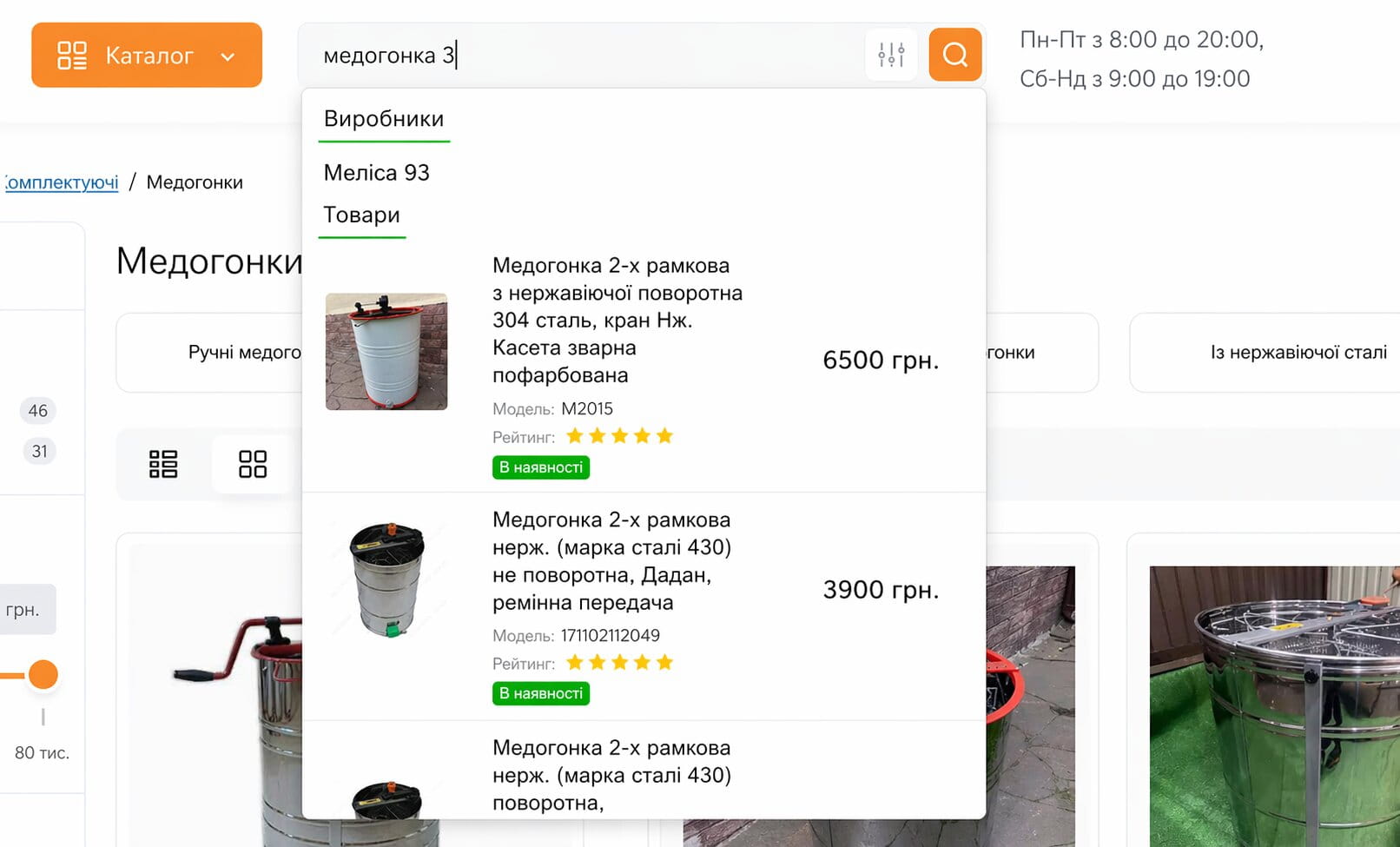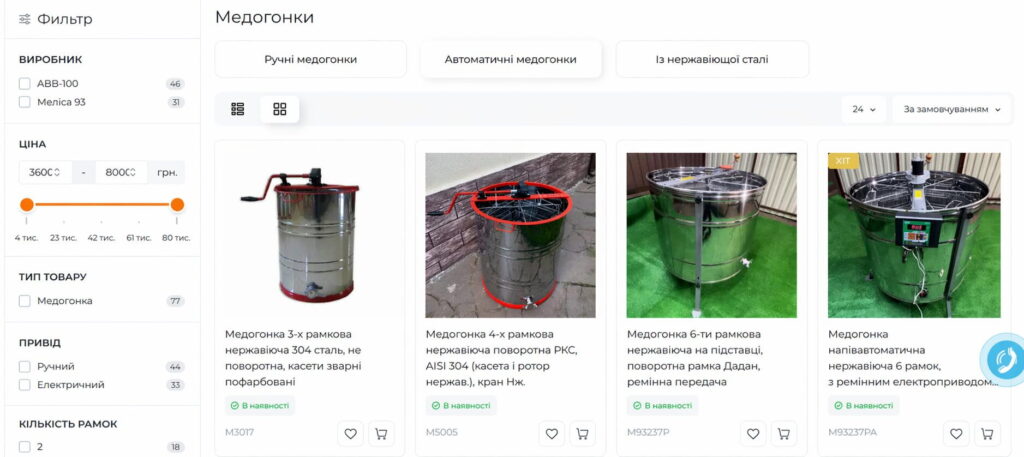 Інтернет-магазин клієнта продає товари для бджільництва. Ця тематика не відрізняється високою конкурентністю, тому більшість сайтів у ніші помітно застарілі та адмініструються без урахування сучасних стандартів. Як наслідок, більшість конкурентів, як і проєкт клієнта, не мають навіть базової фільтрації товарів, і вся навігація будується виключно на категоріях.