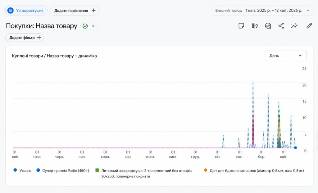Таким чином, новий магазин повністю готовий до запуску контекстної реклами і SEO-просування. Завдяки заздалегідь налаштованій системі аналітики GA4 з Enhanced Ecommerce, наявності товарних фідів і відстеженню конверсій, клієнт зміг одразу приступити до налаштування і запуску рекламних кампаній.